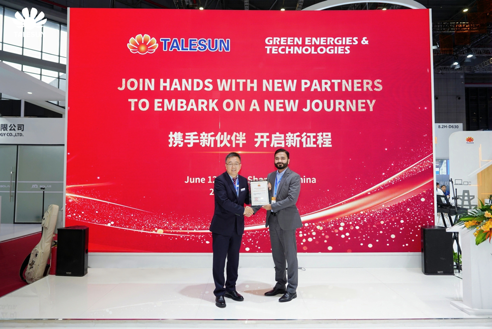 授獎儀式結(jié)束后,騰暉光伏舉行了對巴基斯坦GREEN ENERGIES & TECHNOLOGIES的代理授權(quán)儀式。該公司在當(dāng)?shù)啬茉搭I(lǐng)域擁有豐富的資源和廣泛的市場渠道,雙方將攜手共進(jìn),共同推動巴基斯坦光伏產(chǎn)業(yè)的發(fā)展,為當(dāng)?shù)靥峁┣鍧?、可持續(xù)的能源解決方案。